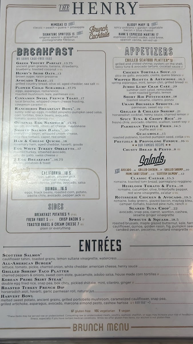 The Henry Menu